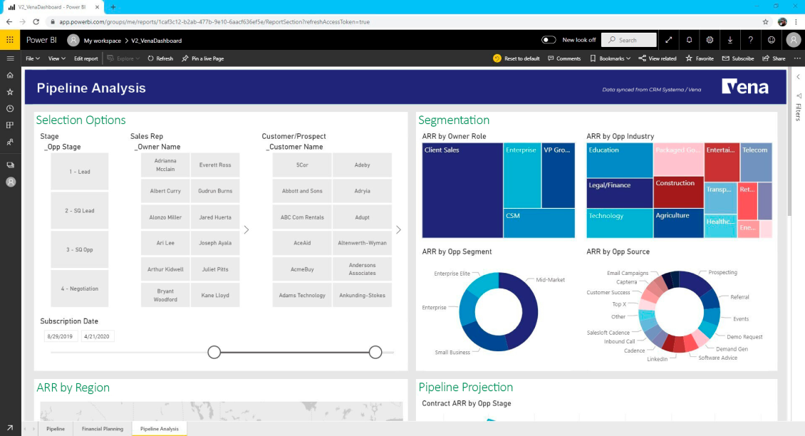 Conectamos Excel a los datos que ya tiene en su GL, ERP, CRM y otros sistemas relacionados con los ingresos. En Vena, nuestro proceso de planificación empresarial integrado hace posible obtener números reales o proyectados y distribuirlos a lo largo del año en cualquier patrón, sin salir de Excel. Ajuste su complejo modelo de ingresos instantáneamente a medida que su negocio fluctúe.